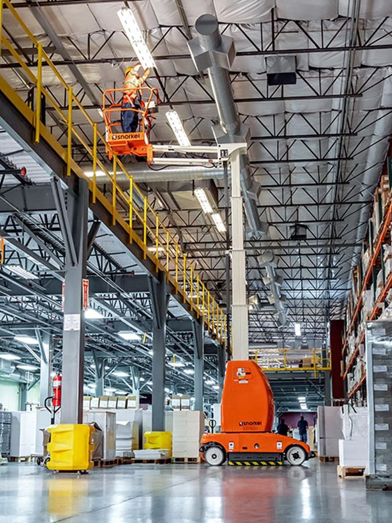 Snorkel line of self-propelled telescopic mast lifts are ideal for various indoor applications. Narrow dimension allow these lifts to be driven through standard doorways and carried in passenger elevators. Available electric drive provide longer duty cycles and increased efficiency on the job on select models.